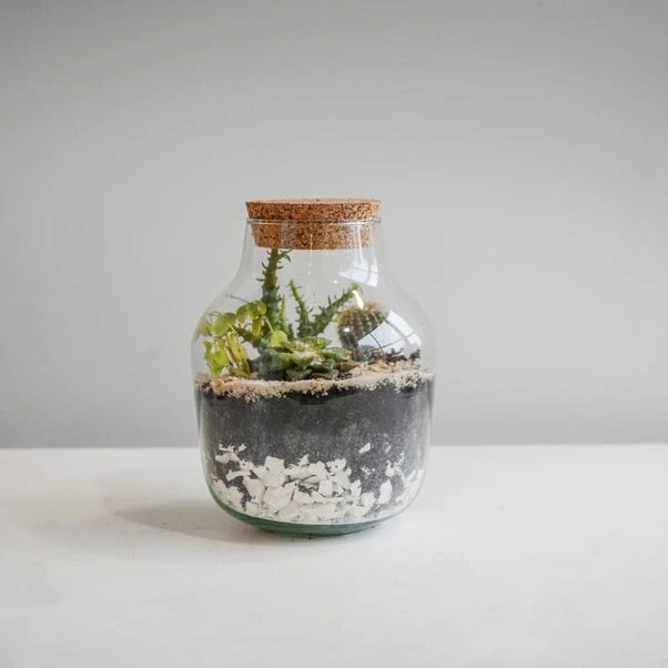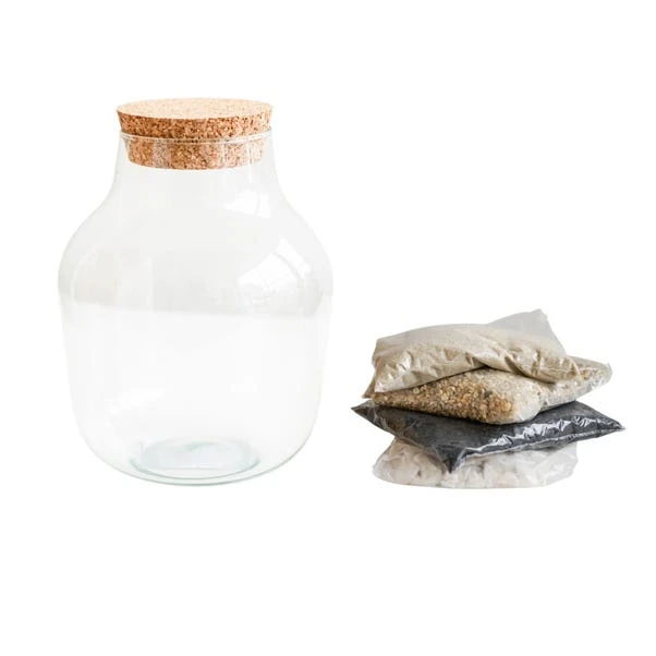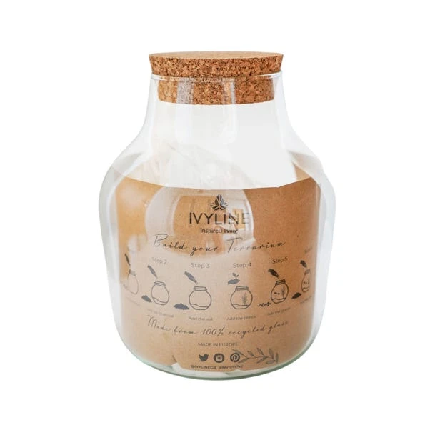 Add the Ivyline DIY Terrarium Kit in Large to your home and watch as the eco-system you create flourishes. This glass terrarium kit is premium quality and comes with charcoal, gravel, sand, and rocks, giving you everything you need to craft a paradise inside. Just add your favourite plants and position the lid to seal it, keeping the design waterproof and raising the humidity inside the terrarium. Made in Europe from 30% recycled glass, this bottle shape terrarium is ethically sourced and sustainable. You’ll have your own little environment inside and know that it’s good for the earth too!