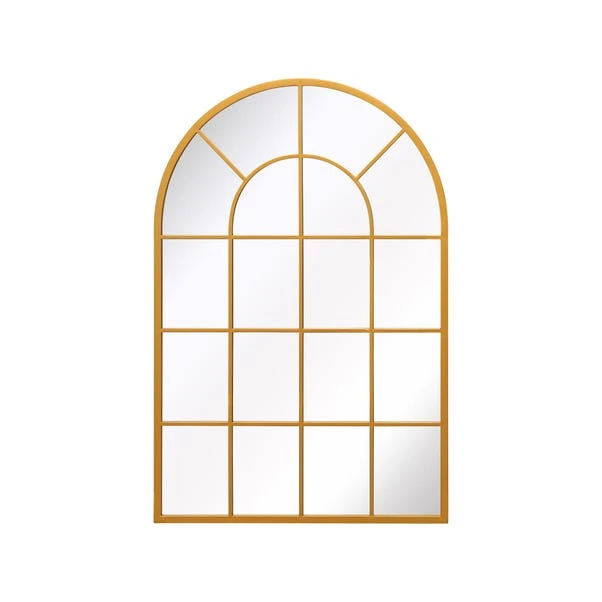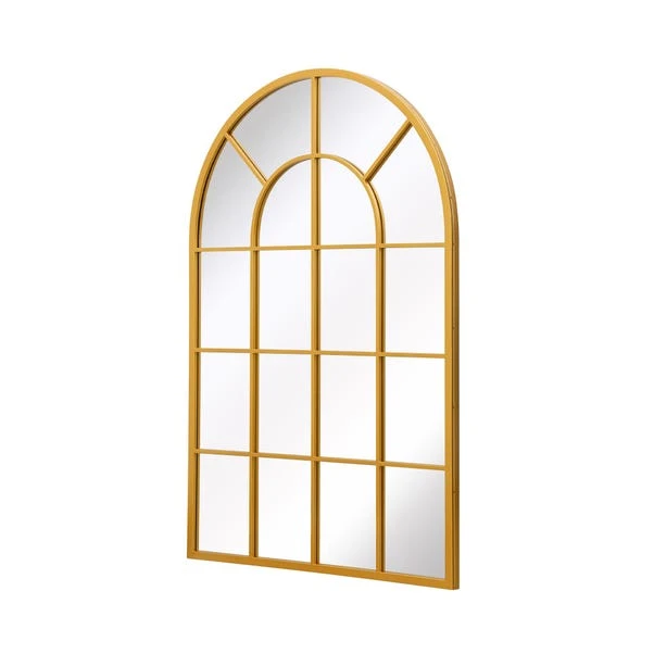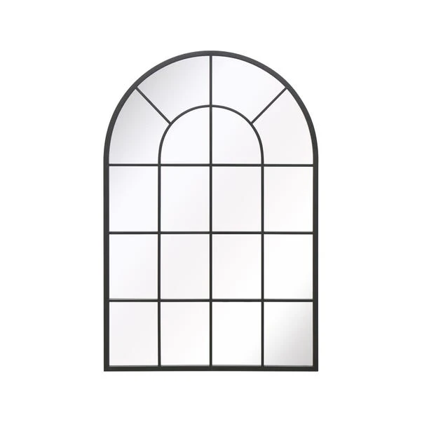 The Arcus Window Arched Window Indoor Outdoor Wall Mirror combines style and versatility for your garden decor or interior space. With its arched metal design, frost-protected mirror glass, and iron metal frame, this indoor outdoor mirror adds a modern touch to any setting. Install effortlessly with the key-slot fixing brackets on the mirror frame.
