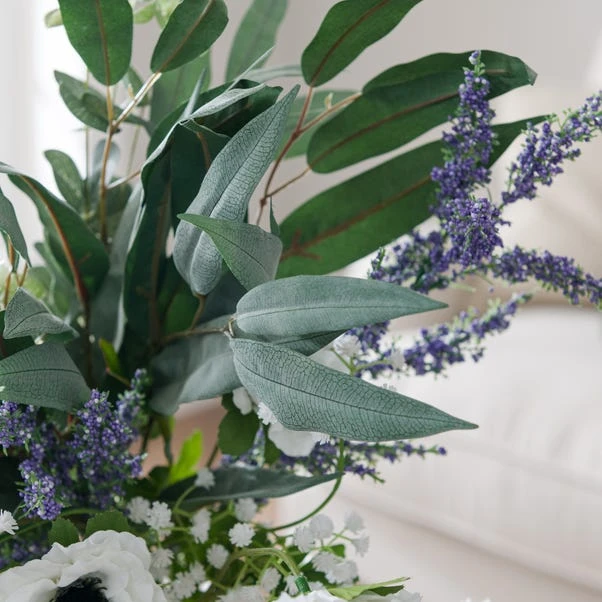 This realistic artificial bouquet celebrates foliage and anemones in a simple green and white arrangement. The anemone will raise a smile with their bright faces throughout the year, and really stand out on a background of foliage in lush greens with vibrant purple berries. Pre-arranged and ready to display in a vase of your choice, this is a maintenance-free and versatile decoration for your home.