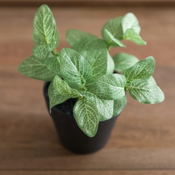 This artificial Fittonia plant has realistic foliage and an interesting two-tone pattern. Great for adding colour to shelves, mantlepieces or dressing tables, this is a versatile piece. Place it in a decorative plant pot and it’s ready to go, with no maintenance required.