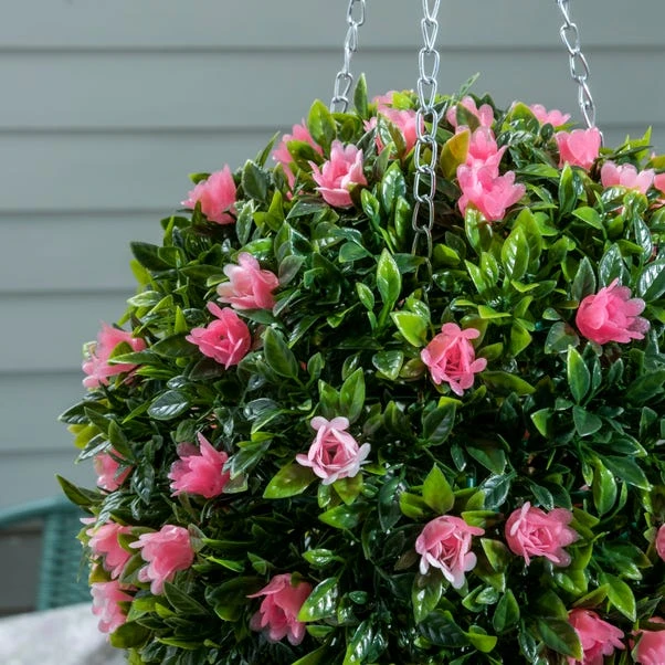 The Topiary Ball with Pink Flowers is a beautiful hanging decoration that will look great in any home. These gorgeous pink flowers will bring a pop of colour and life to your space.