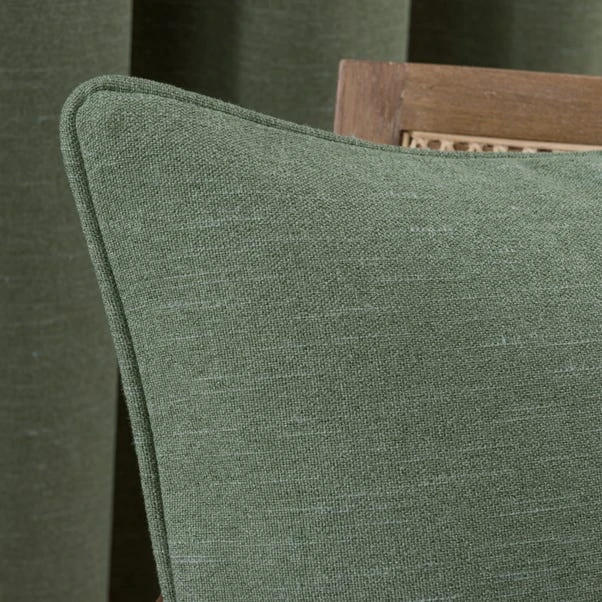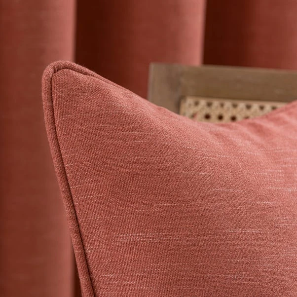 With its heavyweight fabric and linen look, this Calista cushion has a soft feel and is available in a wide range of colours to suit your decor. The square cushion is finished with a piped detail and the cover is removable for machine washing. The cushion is filled with plump polyester fibre for great support, and matching curtains are also available.