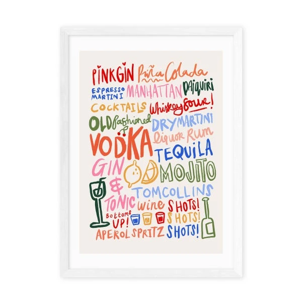 This bright and colourful print celebrates cocktails of all varieties in vibrant typography, and is fade-resistant to withstand the test of time. Available in a choice of sizes, framed or unframed, it’s truly adaptable to best suit your walls, and would be a great addition to a kitchen or entertaining space.