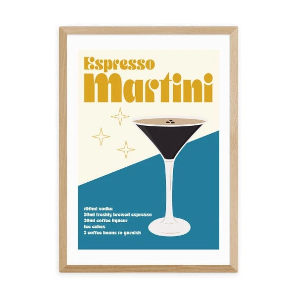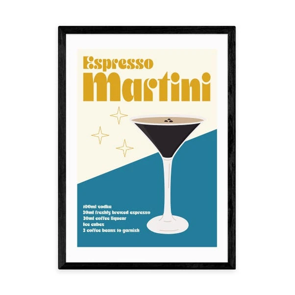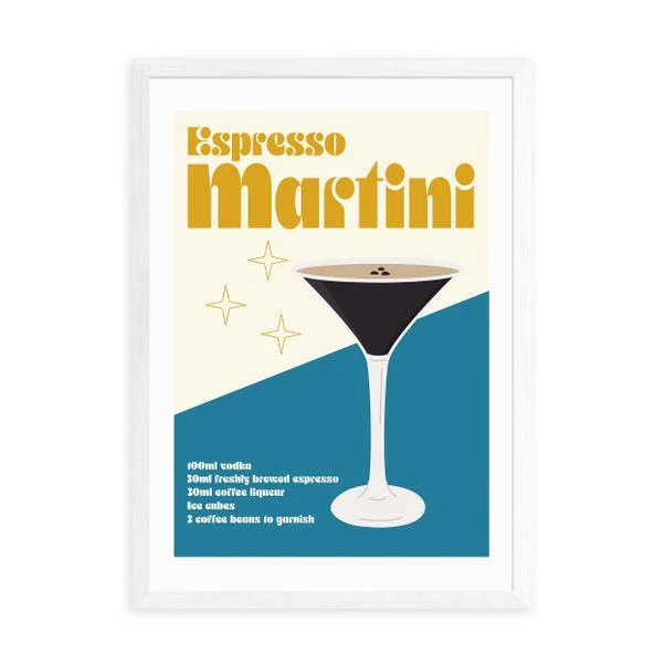 Bring your love of espresso martini’s into your home with this fun print. The print even includes the recipe to make a tasty espresso martini cocktail!