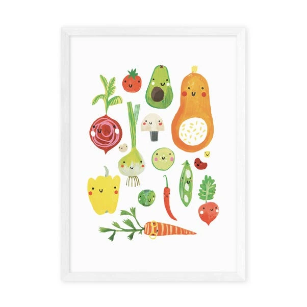 Great for kitchens and dining areas, this adorable Happy Veggies print has a cast of friendly vegetables, ready to brighten up your walls. Their colourful smiling faces have been printed using a fade resistant process to ensure their colours stay vibrant over time. Choose from a range of sizes and frame options, including unframed for displaying in your own style.