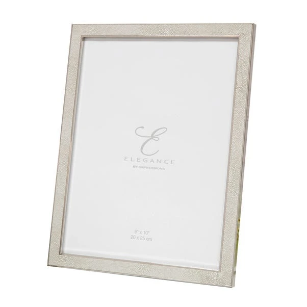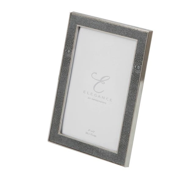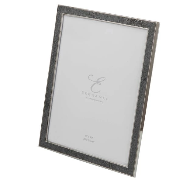 This Elegance Faux Shagreen Photo Frame features a sleek metal finish with a faux shagreen insert in a choice of colours, adding a touch of luxury and texture to any room. Designed for versatility, this frame can be displayed both landscape and portrait, which makes it perfectly adaptable for several types of photos. Packaged in a luxury gift box, it is an ideal gift for any special occasion. This photo frame is available in multiple sizes and colours.