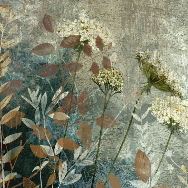 Sabrina Roscino’s framed canvas captures the essence of the countryside transitioning from autumn to winter, with wildflowers, ferns, and frost-kissed foliage rendered in mottled greys, greens, and burnished bronze. Perfect for gifting, this framed art is ready to hang with a sawtooth wall hanging, suitable for any room.