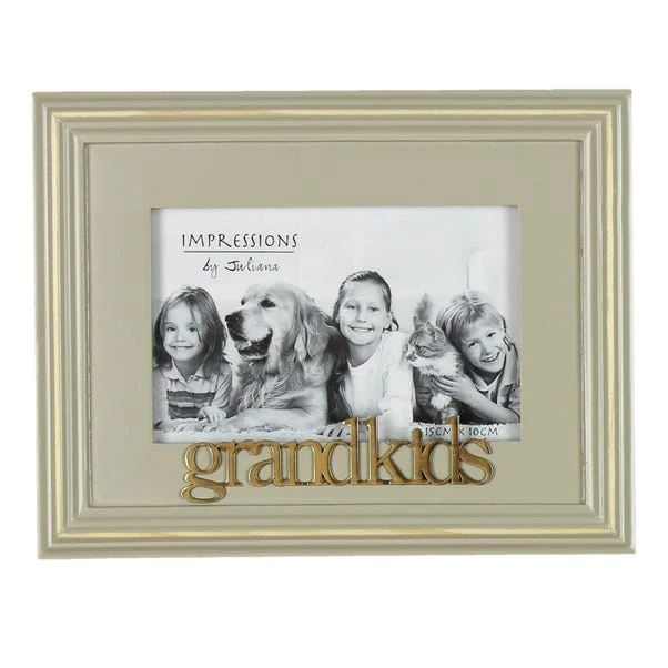 Here’s to the Grandkids Photo Frame – the perfect gift for grandparents to display their favourite photograph of their grandchildren. The frame features a lovely grey finish, a 6″ x 4″ aperture, and the word “Grandkids” in gold metal lettering.
