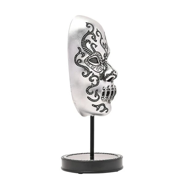Dive into the mysterious world of the Dark Arts with this Death Eater Mask ornament. The freestanding resin piece features a mask style design, celebrating the Death Eaters from the hit Harry Potter series. Perfect for fans of the more sinister side of the wizarding world, this would make an eye-catching feature in your living space, or as a gift for a fan of the series.