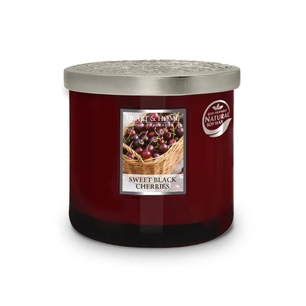 The perfect fruity combination to excite the senses! Juicy, ripe cherries, complemented by hints of delicious apple and sweet peach produce a succulent scent full of mouth-watering aromas! With two wicks for even more fragrance enjoyment and an intricately detailed embossed lid, this pretty candle makes a stylish addition to any home.