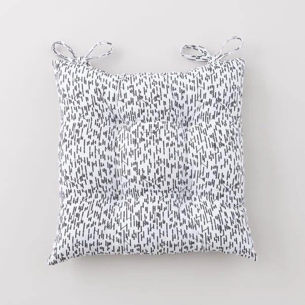 Our black and white Hurdle seat pad has 4 button stitches to help it keep its shape. The modern abstract print design makes it perfect for a modern setting or a quick style update. Add to your dining chair or patio furniture for a layer of comfort. These seat pads are plumply filled with a recycled polyester filling and finished with two ties to ensure they fit most chairs and do not slip.