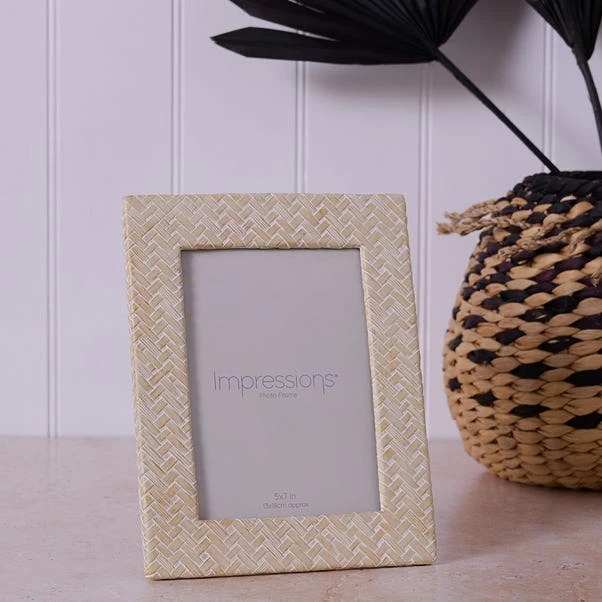 The frame features a neutral coloured woven effect with a textured touch, adding a unique and elegant look to any space. It is made from durable resin, ensuring longevity and a high-quality finish. Designed for versatility, this frame can be displayed in both landscape and portrait orientations, which makes it perfectly adaptable for showcasing different types of photos. This photo frame is available in multiple sizes.