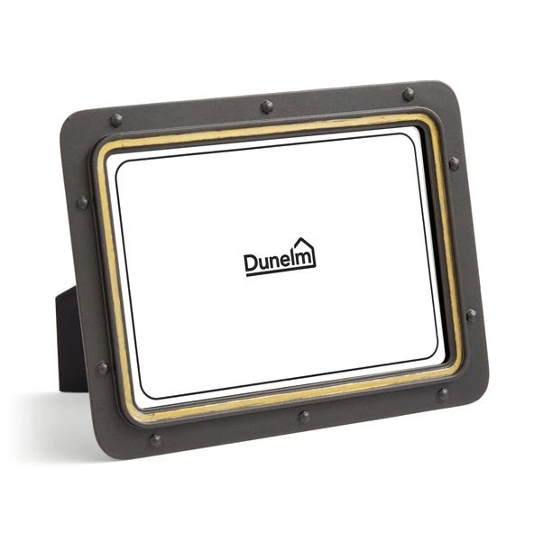 Give your favourite photos the display they deserve with this freestanding Industrial Black & Gold Photo Frame. The mix of black and gold is accented with rivet style features, adding a touch of contrast making it a standout piece on shelves, desks, or mantelpieces. Designed for versatility, it can be displayed in both portrait and landscape orientations, making it perfect for any photo.