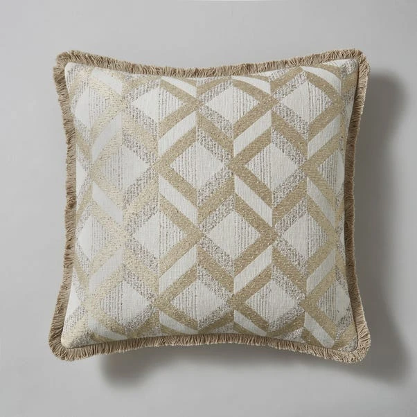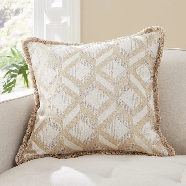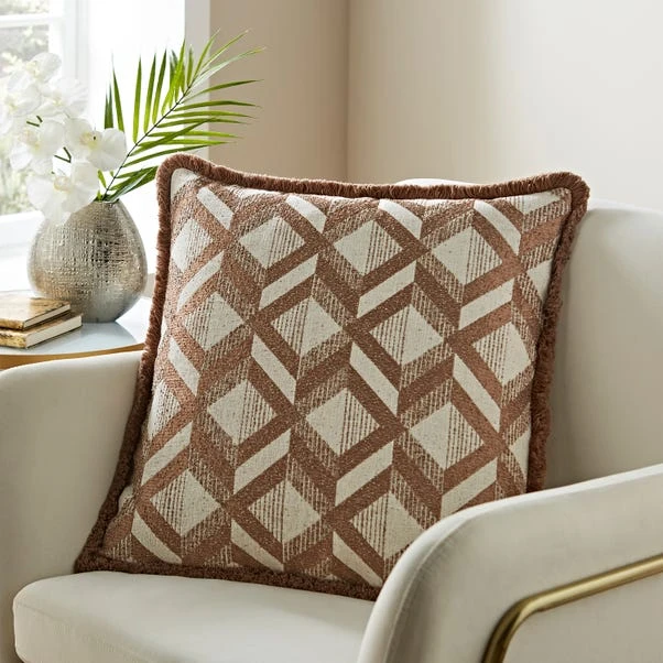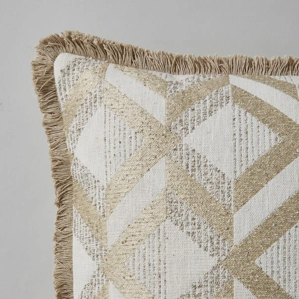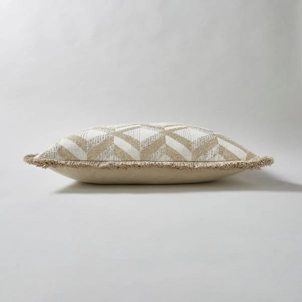 Add a touch of sophistication with the Luxury Jacquard Geometric Cushion. Boasting a textured woven geometric design and a soft, luxurious hand feel, this cushion is filled with luxury feathers for extra comfort. A zip closure and machine washable convenience make this a must-have for any stylish home.