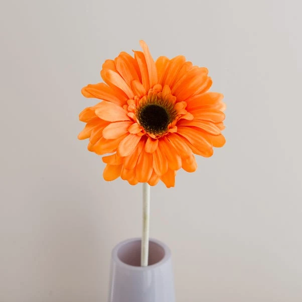 Add a floral flourish to any room with this stunning orange gerbera stem. With its vibrant colours and realistic design, it’s the perfect way to bring a touch of floral beauty into any space, effortlessly. The low-maintenance nature means you can enjoy its cheerful, eye-catching blooms all year round. Versatile and colourful, this stem works beautifully on its own or as part of a mixed floral arrangement. Ideal for any interior display, from living rooms to dining areas. Bring warmth and charm into your home with this gorgeous gerbera stem.
