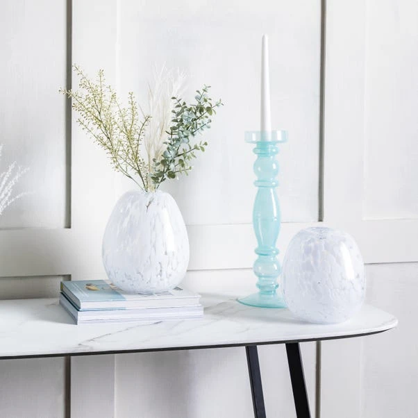 With a smooth organic shape, this vase is elegantly simple, letting the stunning pattern of the white Murano-style glass really shine.