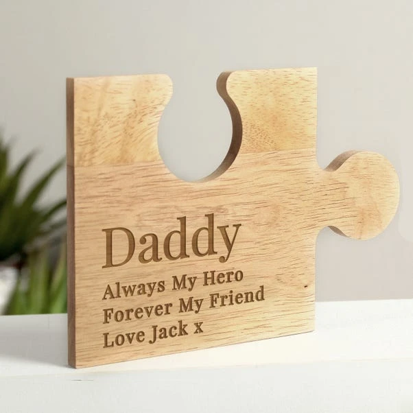 Personalised Free Text Jigsaw Piece Ornament: This versatile wooden jigsaw piece ornament is a heartfelt gift for your loved one. Personalise it with up to four lines of text, creating a unique decoration or coaster to cherish.