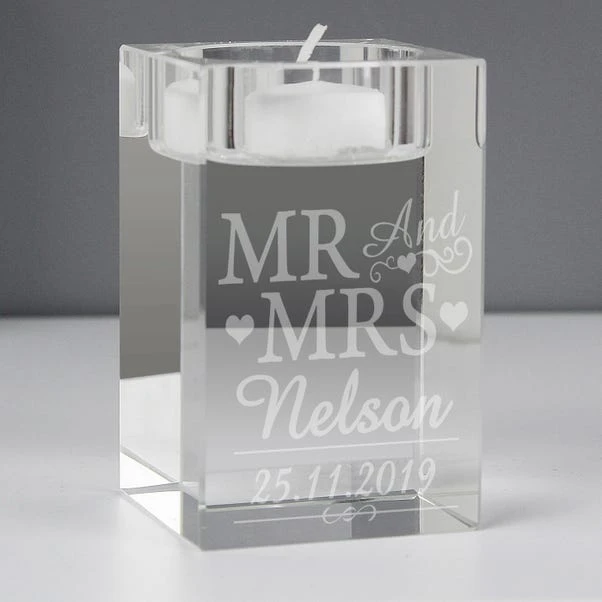 - Personalised Mr and Mrs Glass Tealight Holder
