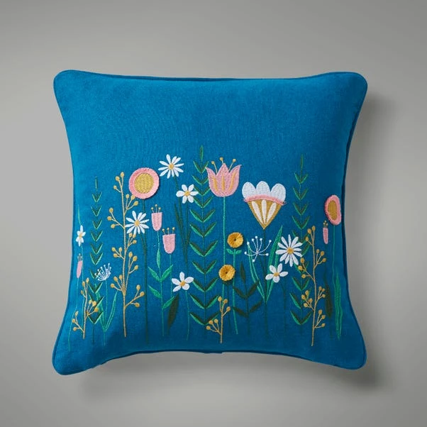 Well isn’t this cushion cover just ‘blooming’ beautiful. A modern scandi floral design has been embroidered into a polyester fabric. With a plain reverse, the cushion cover has been complete with a zip fastening which helps secure the filling inside of the cover.