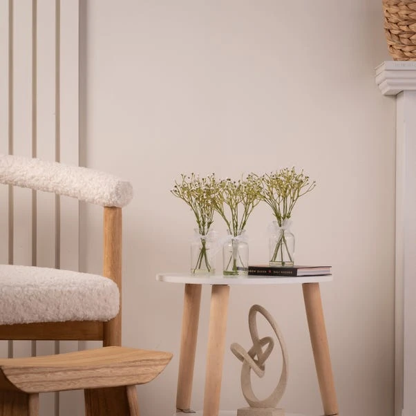 This Set of 3 Artificial Gypsophila Bundles in Glass Bottle Vases adds a touch of charm to any occasion. Ideal for table centres or as DIY wedding décor, these petite vases bring a delicate beauty to your setting.