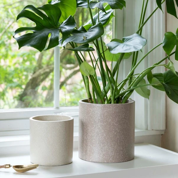 Be transported to a Mediterranean paradise with the Ivyline set of 3 Valetta Terrazzo Planters. With a choice of neutral colours, terrazzo effect and premium glaze, you’ll be stylishly on trend when you display your houseplants in these statement pieces. Arriving in a choice of three extra-large sizes, these Mediterranean influenced houseplant pots are perfect for displaying larger specimen plants like olive trees, citrus bushes, or agave. Simply place in a well-lit area for a modern twist on Maltese chic.