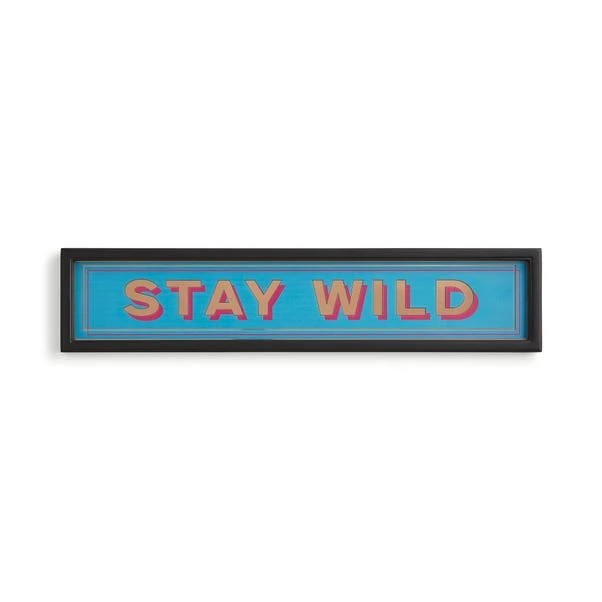 This eye-catching mirrored wall art is ready framed and easy to hang on the wall using its sawtooth fixings. It features Stay Wild typography on a bold blue background, with golden mirrored accents – a great way to add a touch of fun to your room.