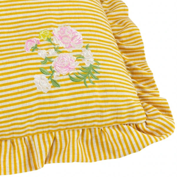 Bring a touch of rustic elegance to your home with the Wylder Martha Ruffle Square Cushion Cover. Adorned with delicate floral embroidery and subtle stripe detailing, this cushion cover exudes timeless charm. The ruffle trim and linen blend fabric ensure a beautifully soft and durable finish.