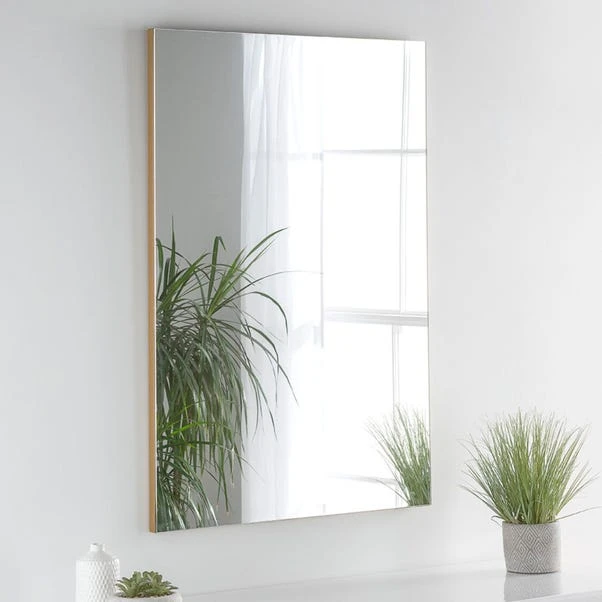 Stylish and understated, this seamless rectangle mirror fits effortlessly into any décor. Its wood frame construction ensures durability, while four hanging hooks provide easy wall mounting. Handmade in the UK by skilled artisans, it offers a blend of simplicity and superior craftsmanship.